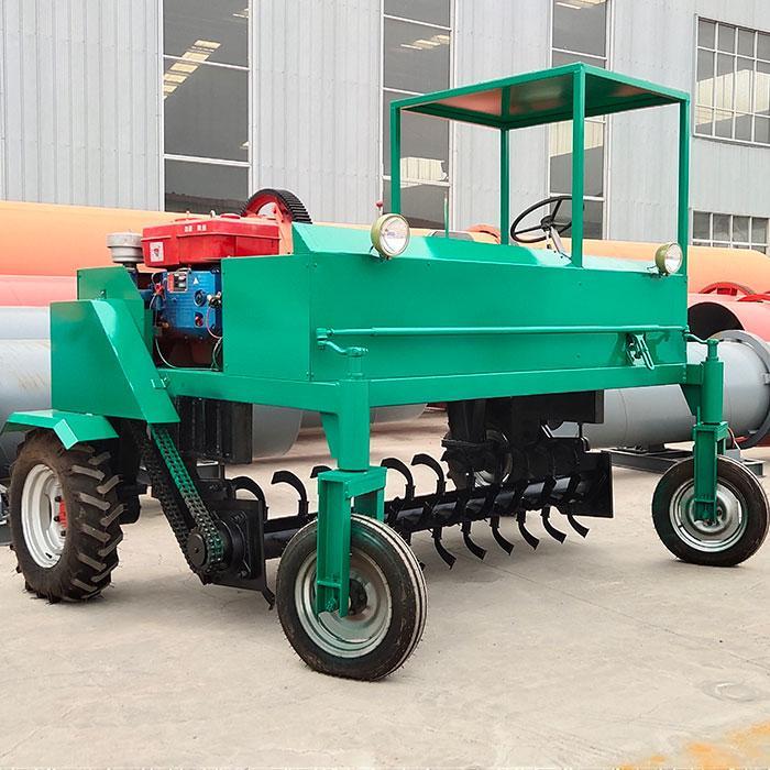 自走式翻堆機(jī)是生產(chǎn)生物有機(jī)肥專用成套設(shè)備中的主機(jī),該機(jī)采取四輪行走設(shè)計(jì),可前進(jìn)、倒退、轉(zhuǎn)彎,由一人操控駕駛。行駛中整車騎跨在予先堆置的長(zhǎng)條形肥基上,由機(jī)架下掛裝的旋轉(zhuǎn)刀軸對(duì)肥基原料實(shí)施翻拌、蓬松、移堆,車過之后篡成新的條形垛堆。即可在開闊場(chǎng)地,也可在車間大棚中實(shí)施作業(yè)。該機(jī)一大技術(shù)突破在于整合了物料發(fā)酵后期的破碎功能。隨著物料逐漸脫水,加裝破碎裝置的刀軸可有效地破碎肥料在發(fā)酵過程中形成的板塊,不僅省去了一臺(tái)粉碎機(jī),更主要的大大提高了粉碎的效率,降低了成本。