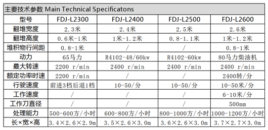 履帶式翻堆機(jī)技術(shù)參數(shù):